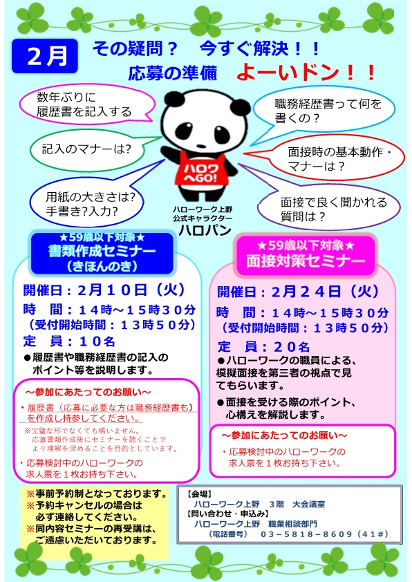 ●応募検討中のハローワークの求人票を1枚お持ち下さい。