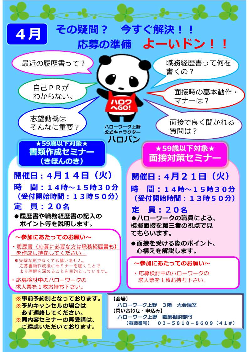 ※4月開催セミナーのご案内(59歳以下対象)