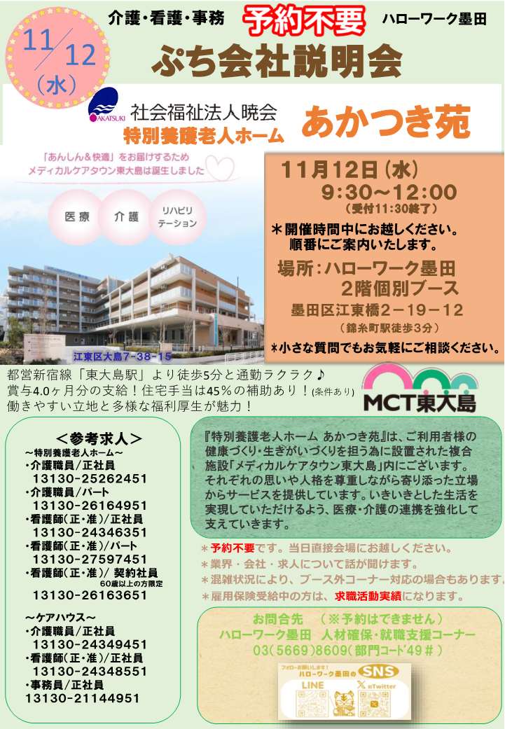 11月12日(水)社会福祉法人暁会 特別養護老人ホームあかつき苑