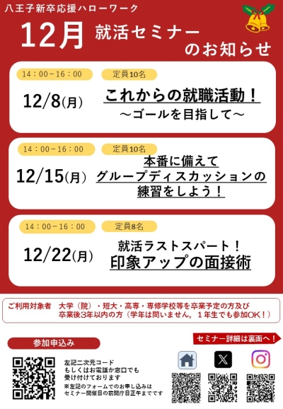 ◆就活セミナーのお知らせ(12/8・12/15・12/22)