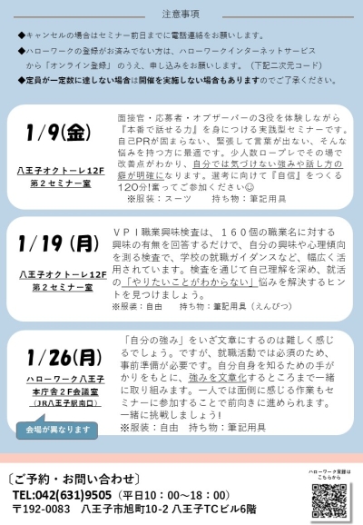 ◆就活セミナーのお知らせ(1/9・1/19・1/26)
