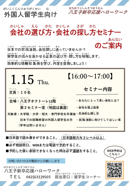 - 外国人留学生向け 1月就職活動セミナー