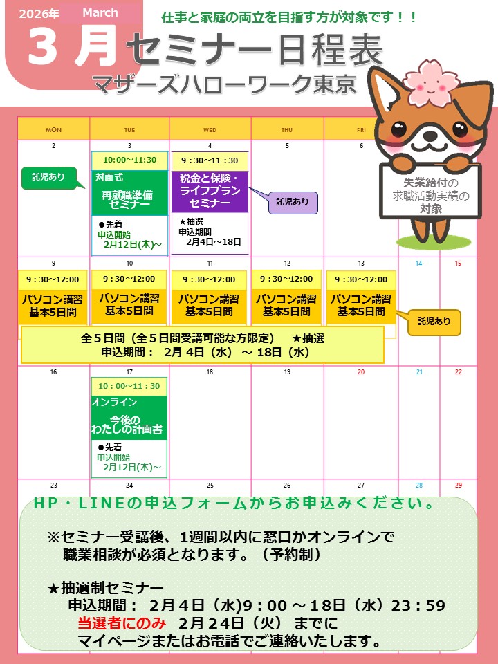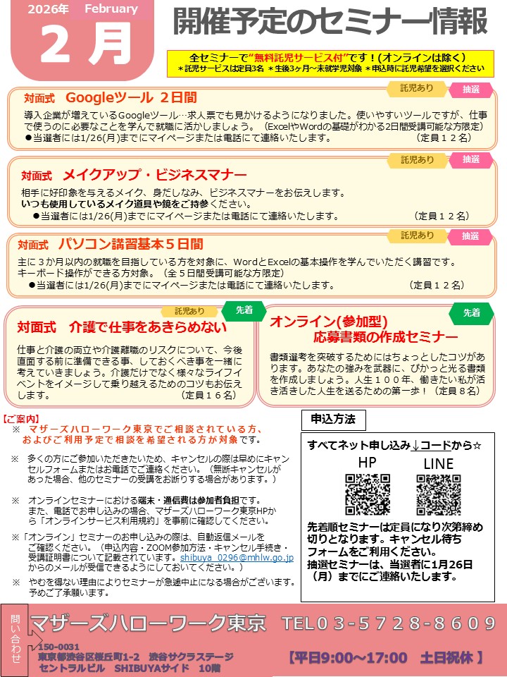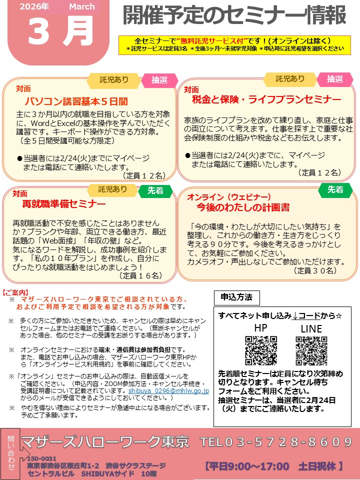 マザーズハローワーク東京で職業相談をされている方(希望している方)が参加いただけます!