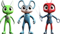 左から順に、カインドはさみさん、カインドはさみくん、カインドはさみちゃん