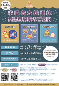 詳細は、求職者支援制度のご案内(厚生労働省サイト)をご覧ください。