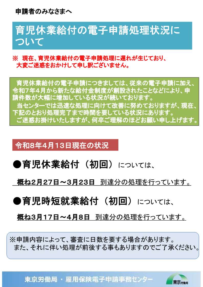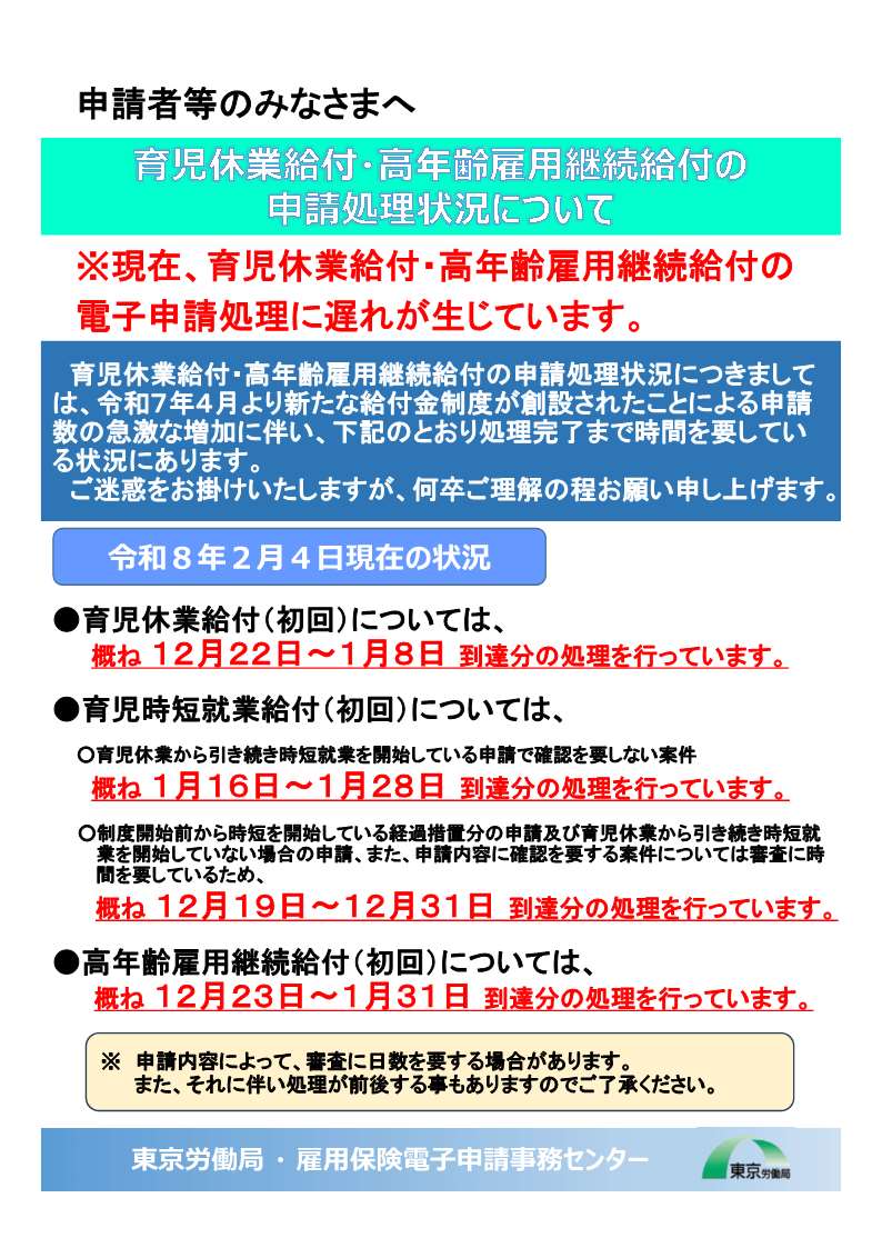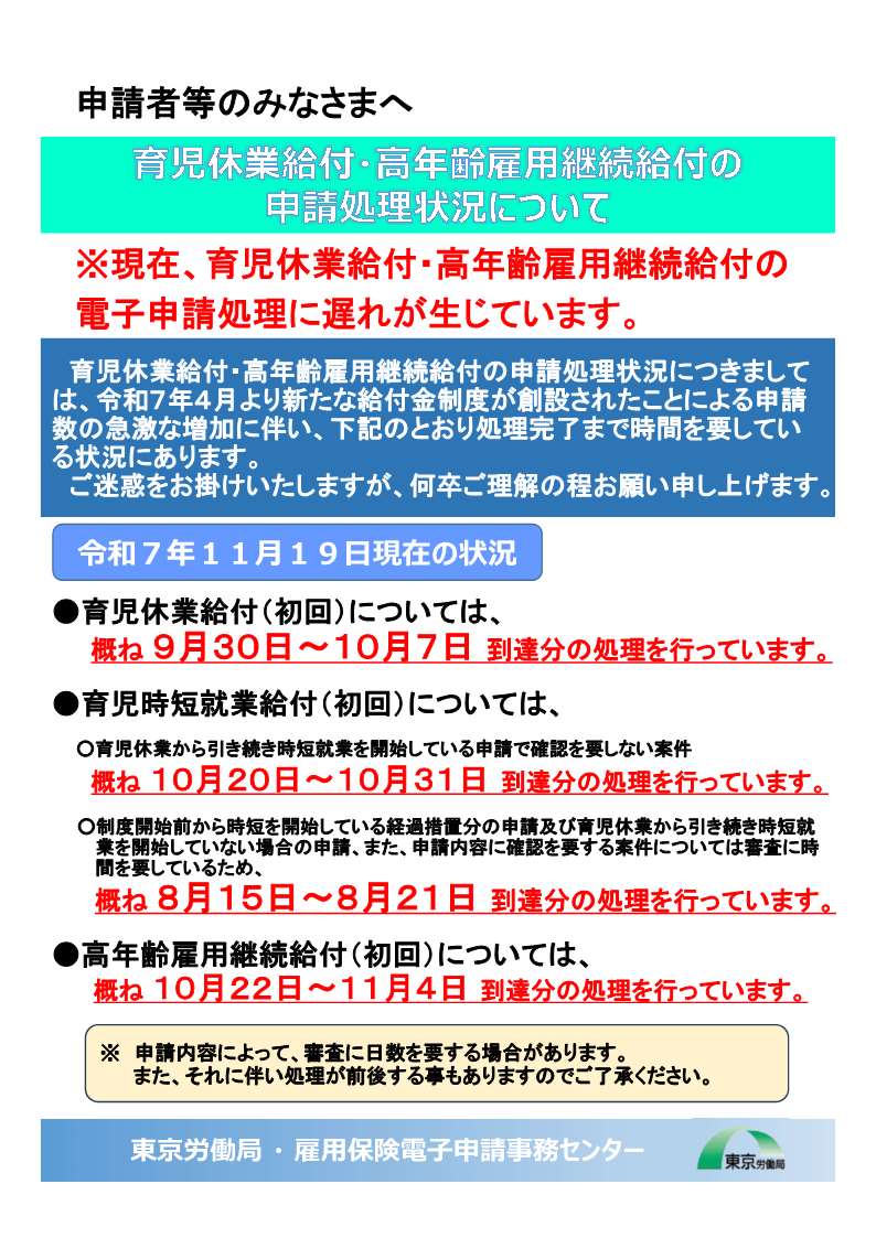 ▶育児休業給付・高年齢雇用継続給付(電子申請分)の申請処理状況について
