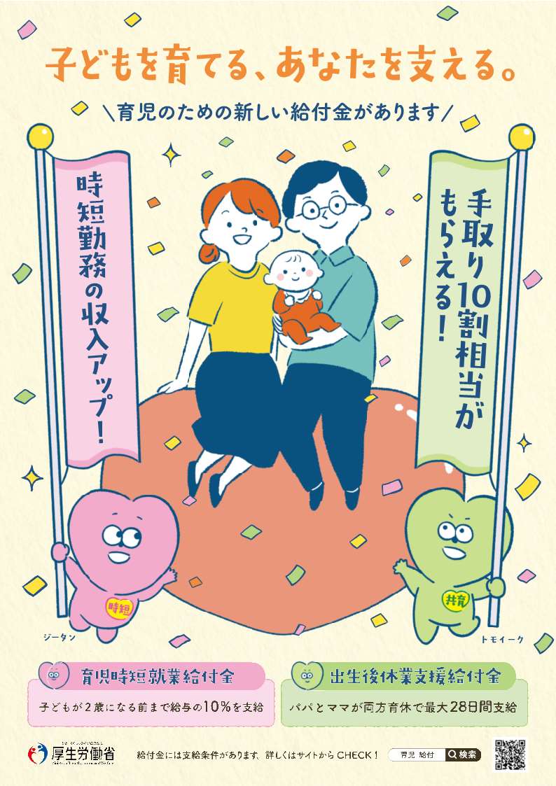 出生後休業支援給付金と育児時短修行給付金のわかりやすい、制度説明資料が公開されました。