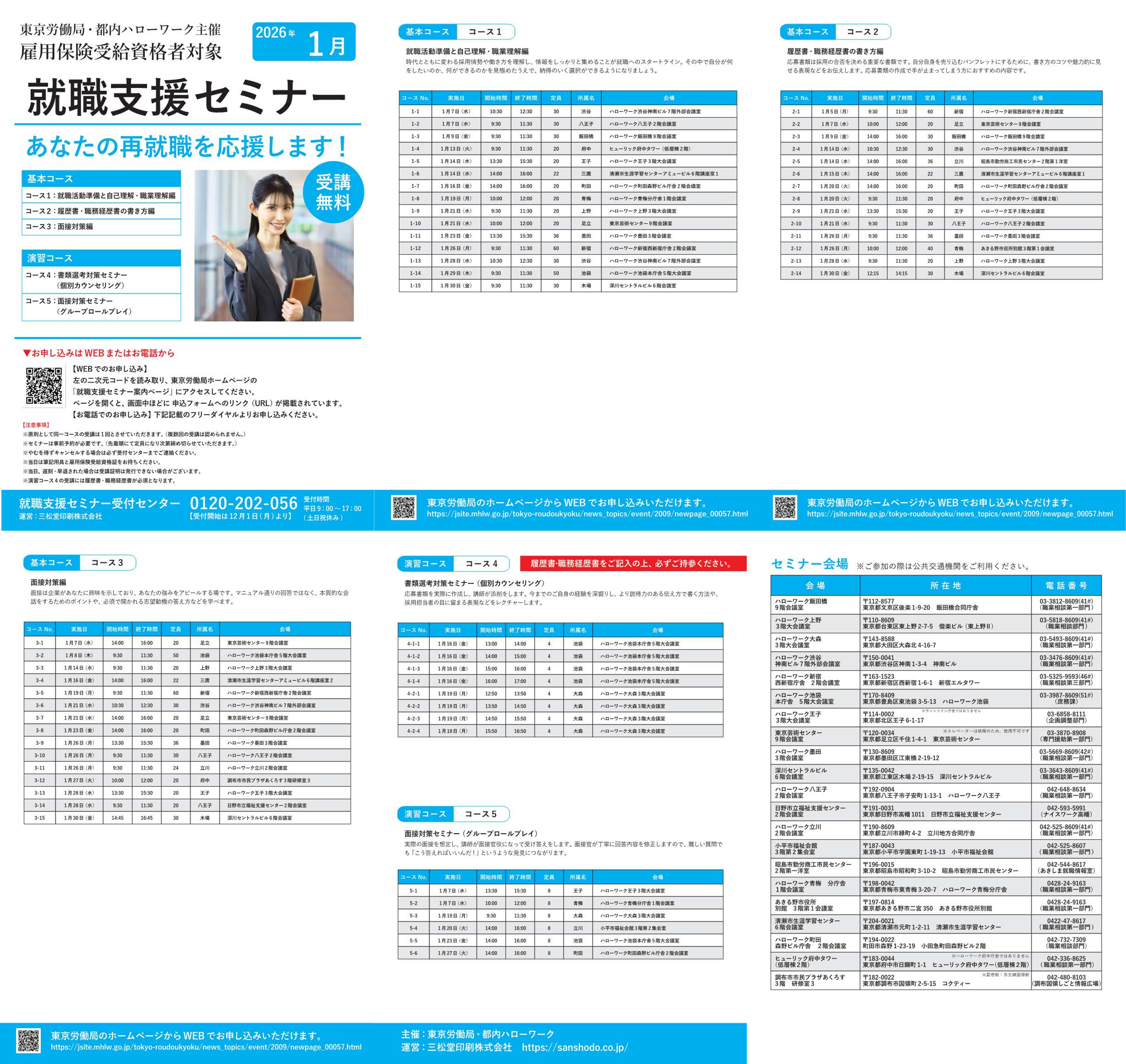 - 東京労働局主催 就職支援セミナー(雇用保険受給資格者対象)の開催について