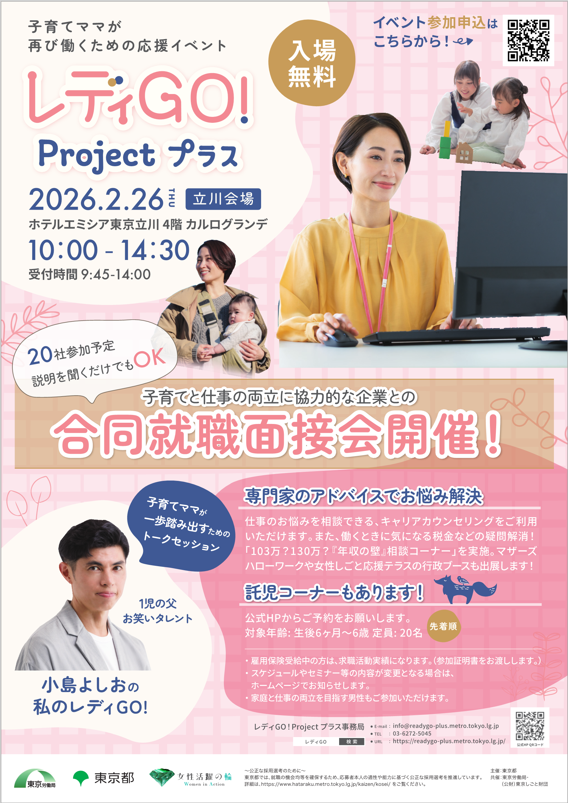- 【参加企業決定!申込受付中!】「レディGO!Projectプラス」における仕事と子育て両立支援合同就職面接会の開催について(第4回渋谷会場・第5回立川会場)