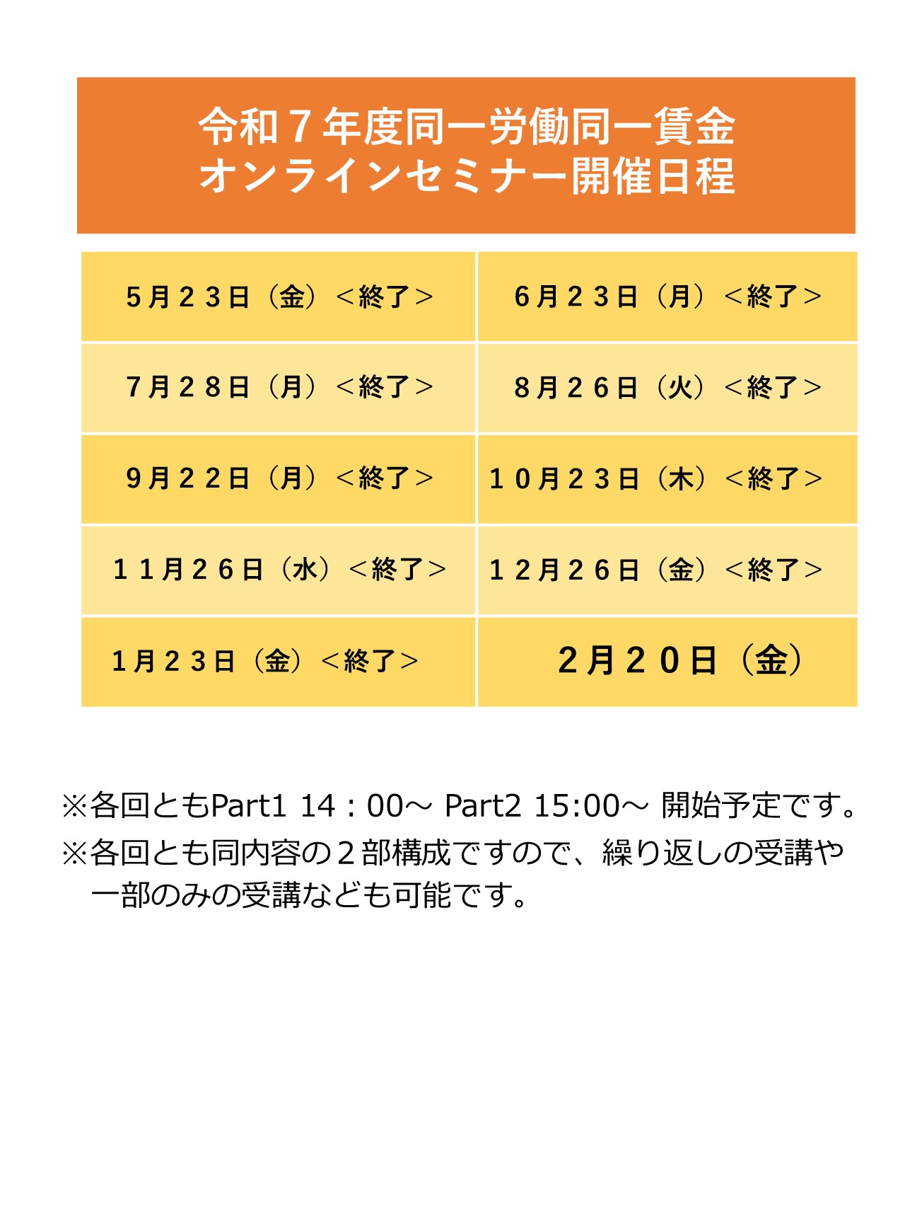 2月20日(金)「派遣労働者の同一労働同一賃金オンラインセミナー ~労使協定作成実務~」を開催します