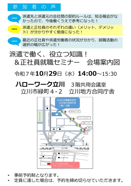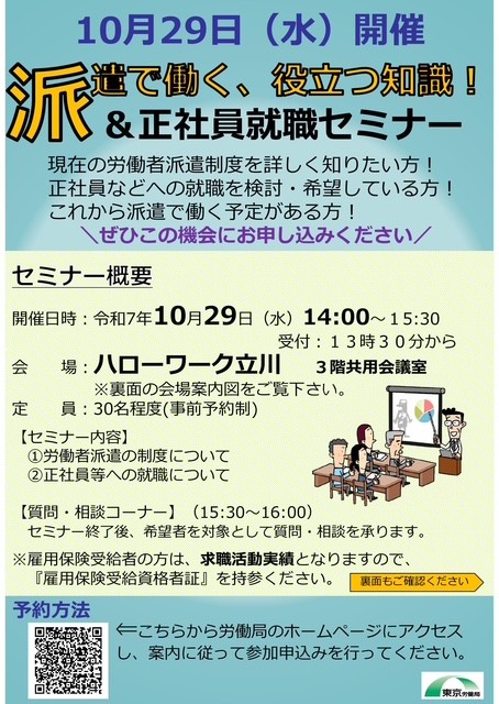 - 派遣労働者セミナーを10月29日(水)にハローワーク立川で開催します!
