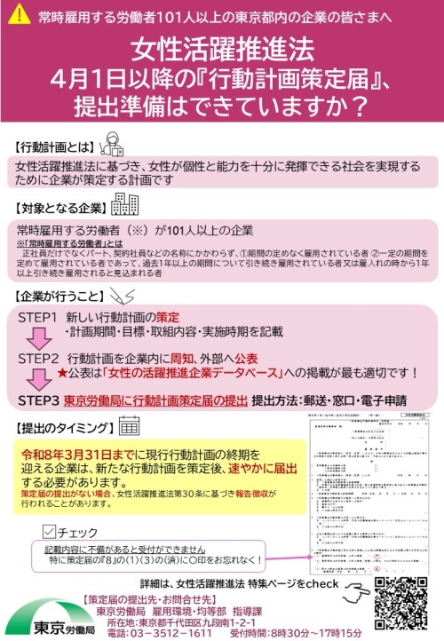 東京労働局 雇用環境・均等部指導課(女性活躍推進法担当)