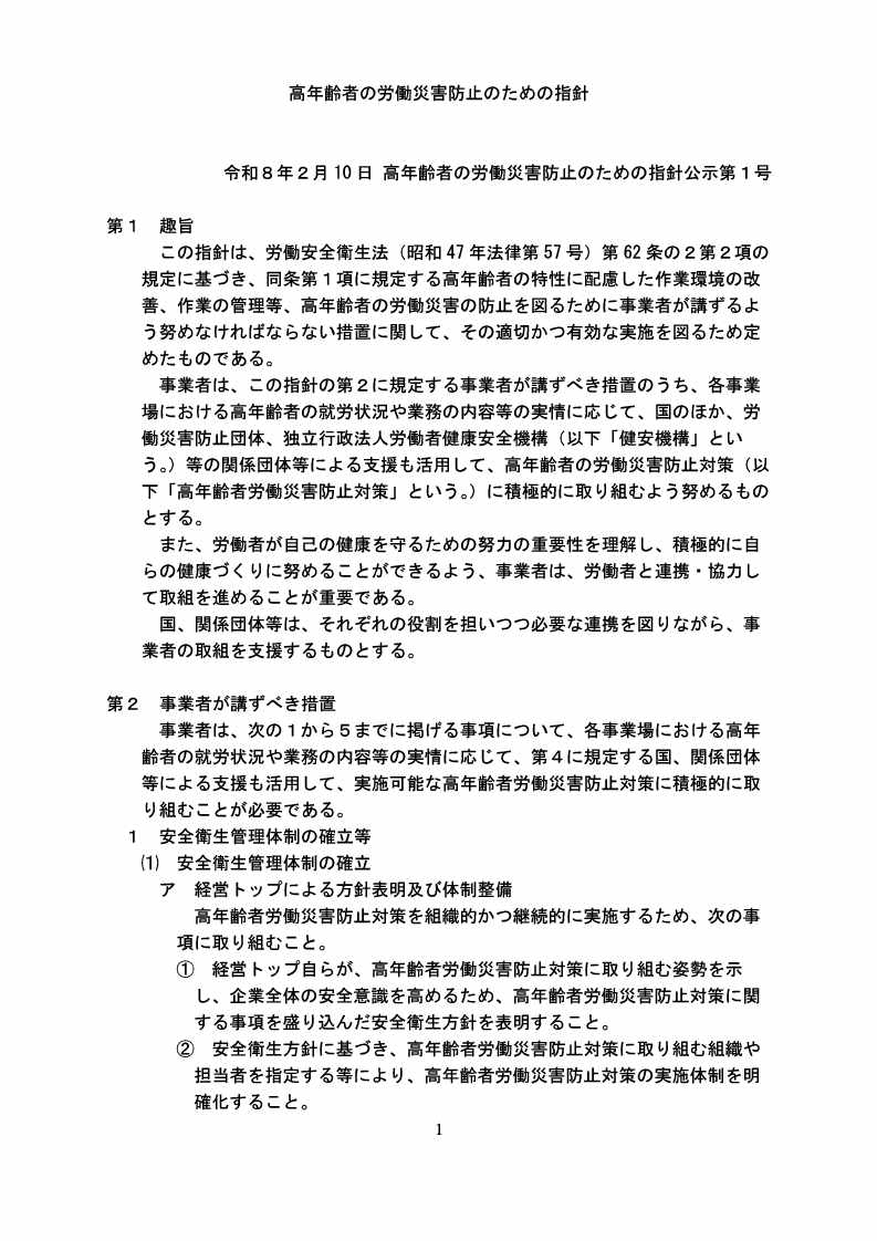 ・「高年齢者の労働災害防止のための指針」について(令和8年2月10日付け基発0210第1号)