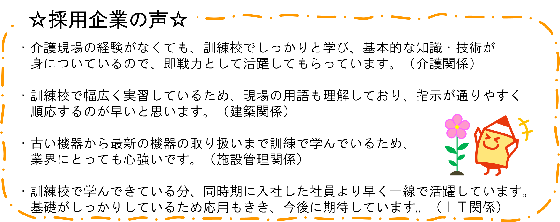 訓練を受けたいと考えている方はもちろん、転職をお考えの方、安定した仕事に就きたい方など、個別相談もできますので是非お気軽にご参加ください。