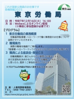 人事院関東事務局が主催するオンライン業務説明会に東京労働局も参加します!