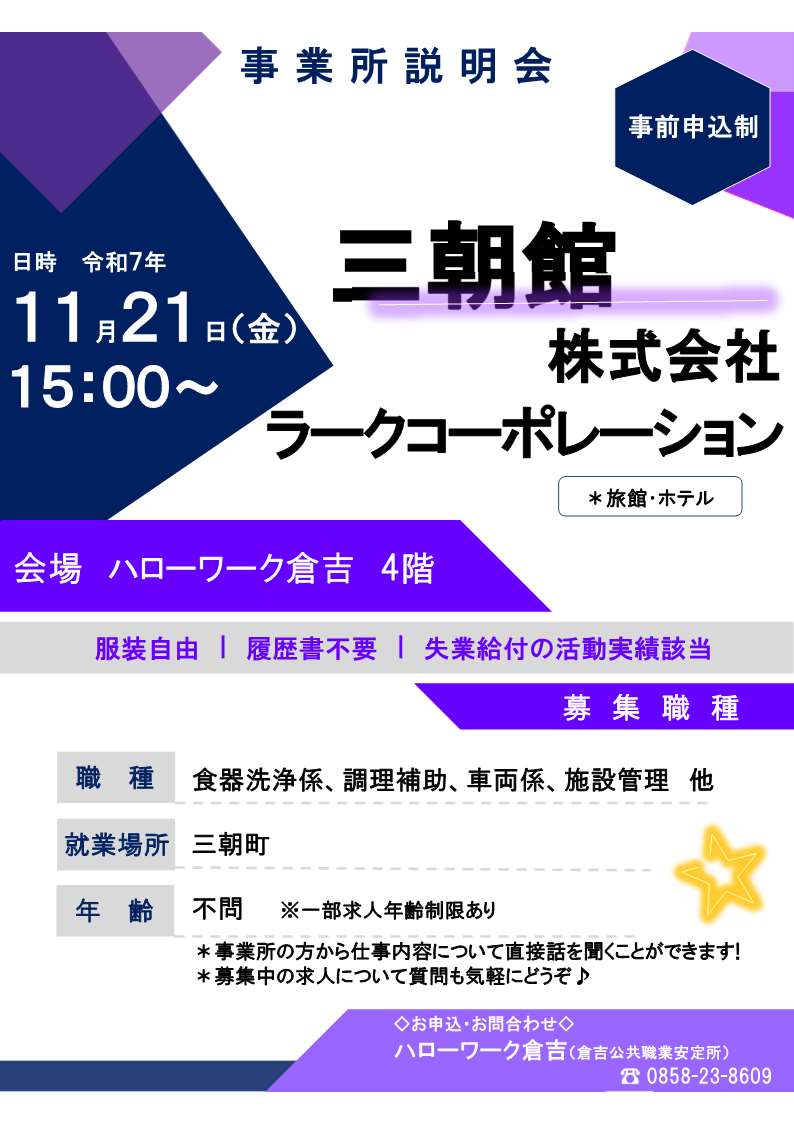 ◎事業所の採用担当者から、事業所PRのほか、採用条件、待遇、福利厚生に関すること、また、職場の雰囲気や採用後のスキルアップに関することなどハローワークの求人票では知ることのできないお話を聞くことができます。