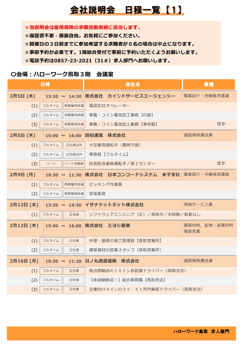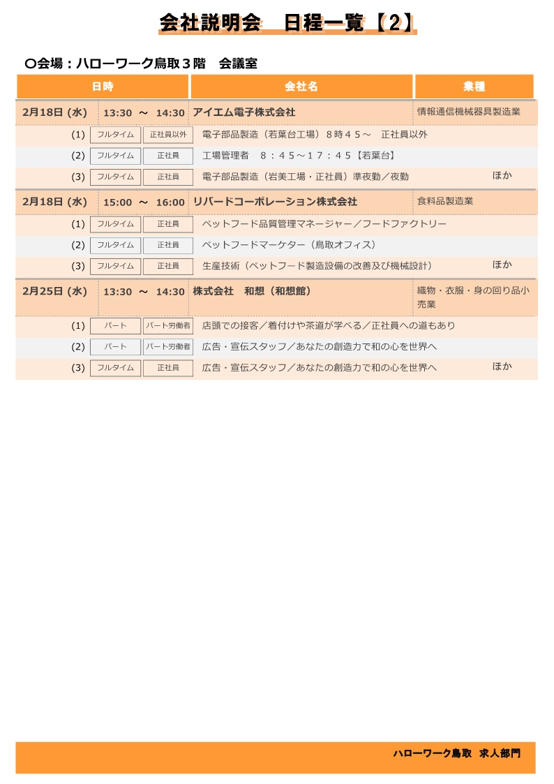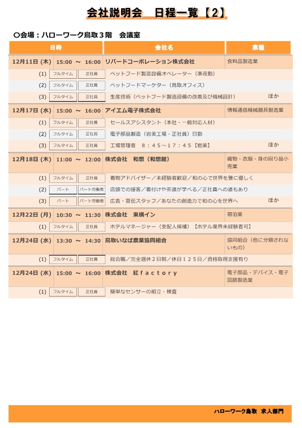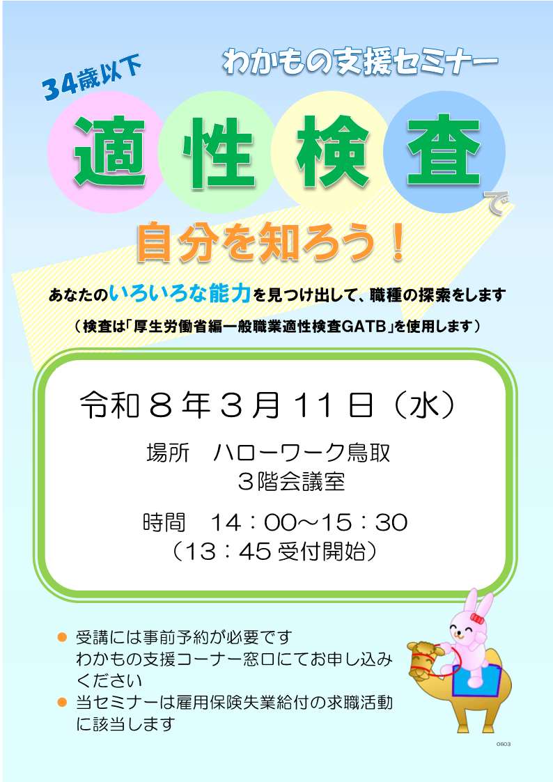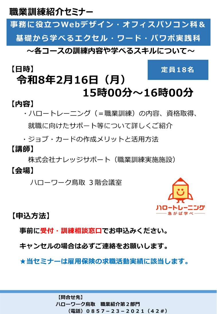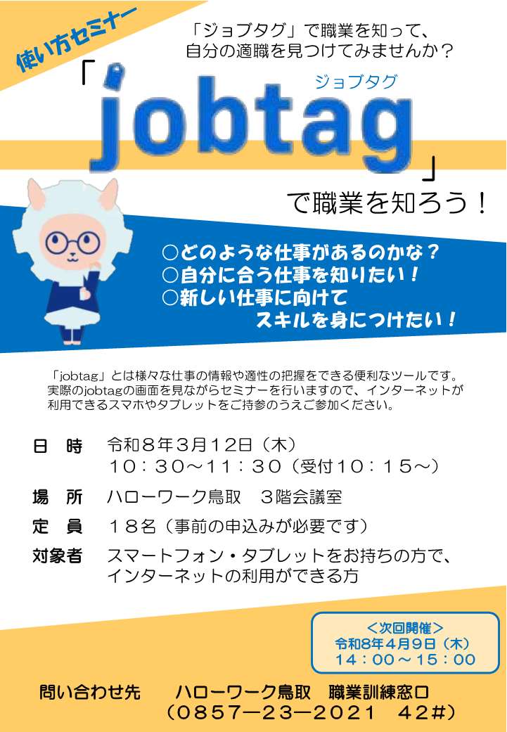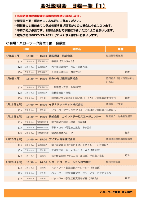 ハローワーク鳥取では、各コーナーでそれぞれ求職者向けセミナーを開催しています。
