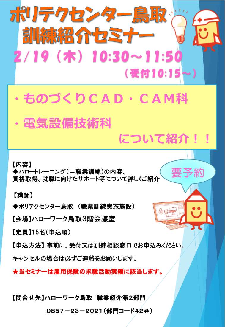 ポリテクセンター鳥取(ものづくりCAD・CAM科・電気設備技術科)