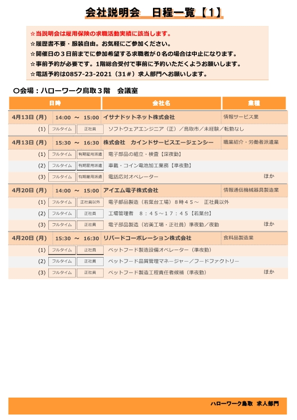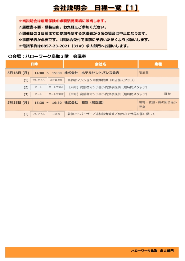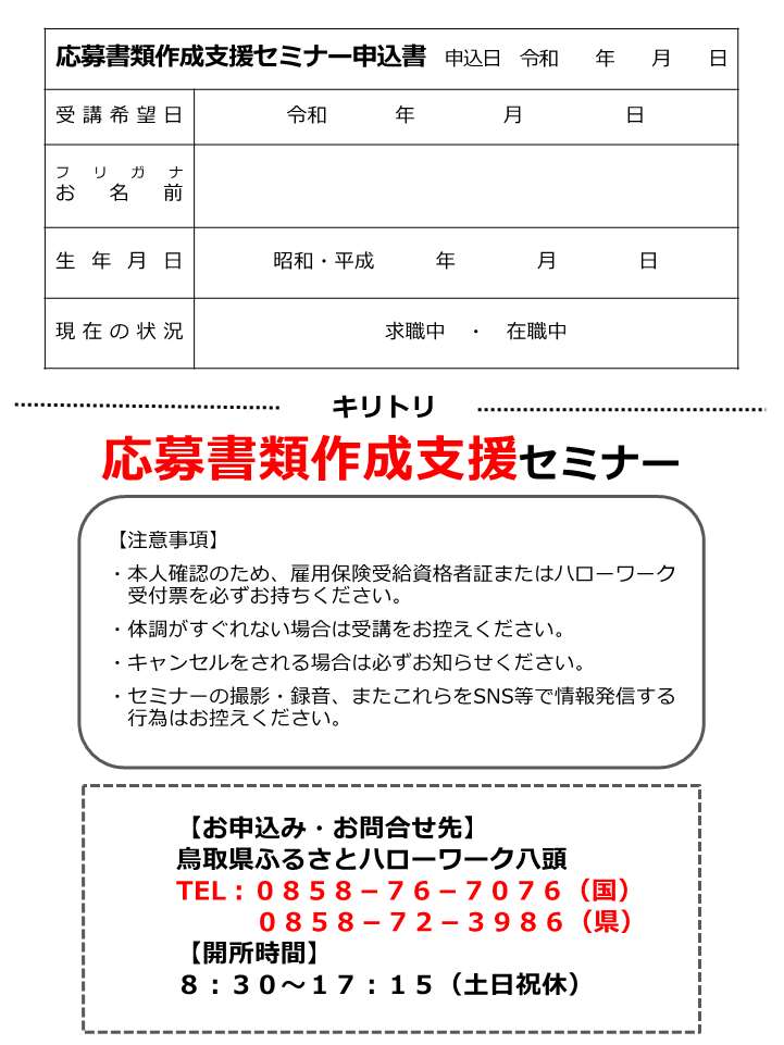 応募書類作成支援セミナー(ハローワーク鳥取/4・5月分)