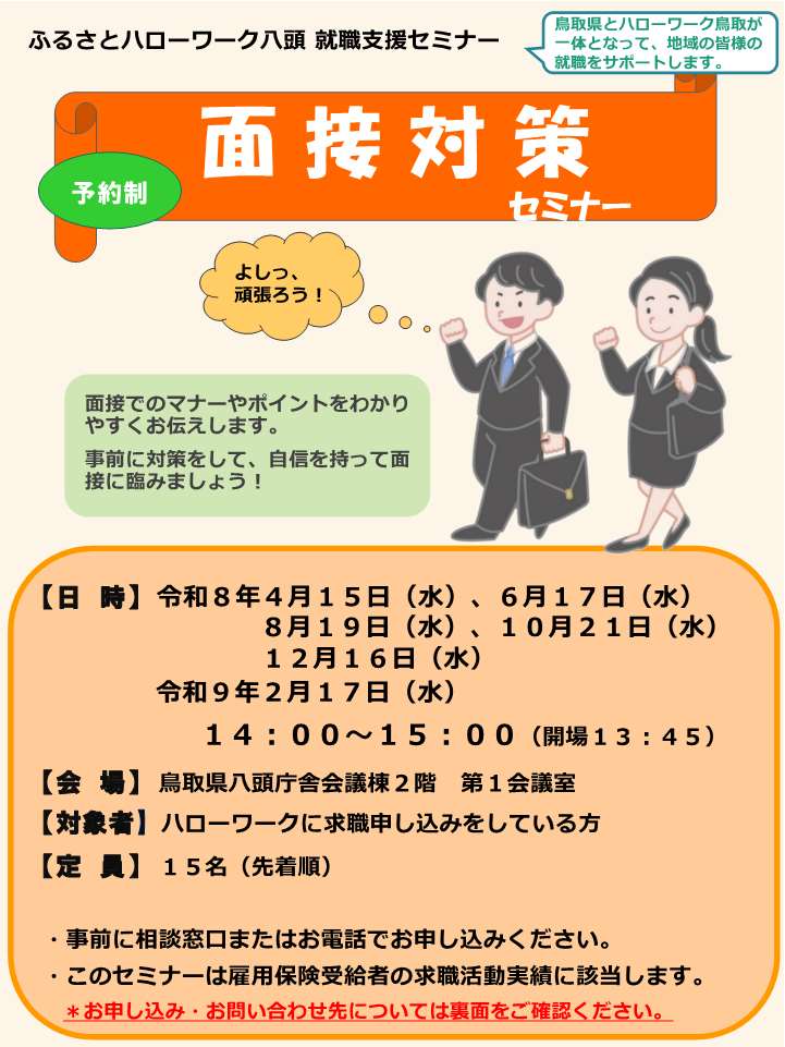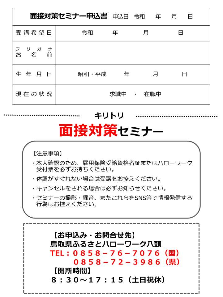 面接対策セミナー(ハローワーク鳥取/4・5月分)