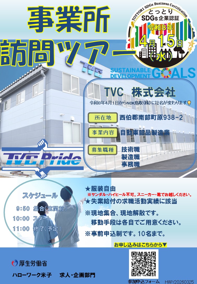 ハローワーク職員と一緒に事業所を見学し、求人票では分からない職場の雰囲気や仕事の様子を実際に見て、感じることができます。ぜひお気軽にご参加ください。
