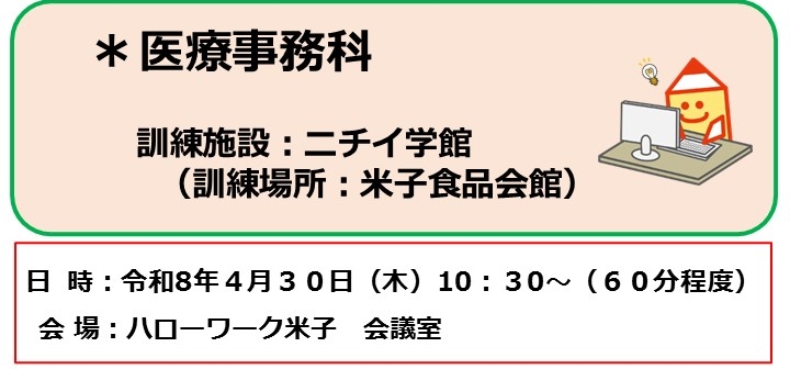 参加希望の方は、米子公共職業安定所総合案内または窓口でお申し出ください。