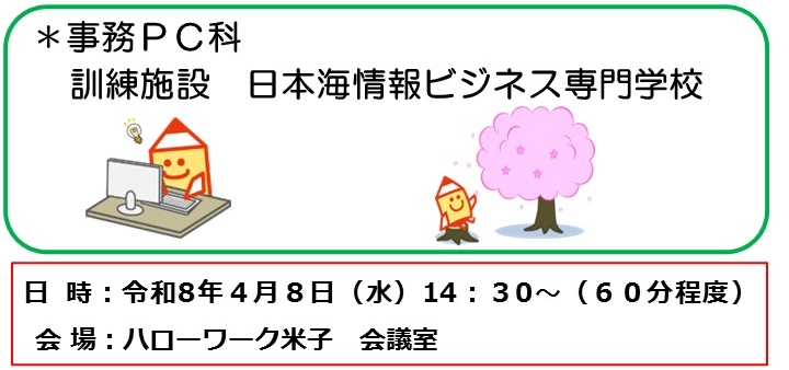 参加希望の方は、米子公共職業安定所総合案内または窓口でお申し出ください。
