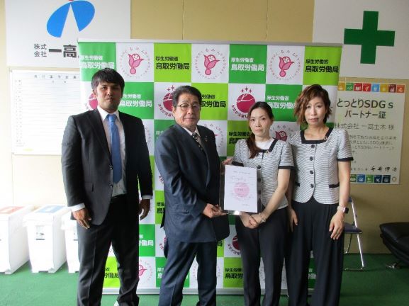 この度、鳥取労働局は鳥取市の株式会社一高土木を「えるぼし」企業に認定し、令和7年9月30日、雇用環境・均等室長が事業所を訪問して認定通知書を交付しました。