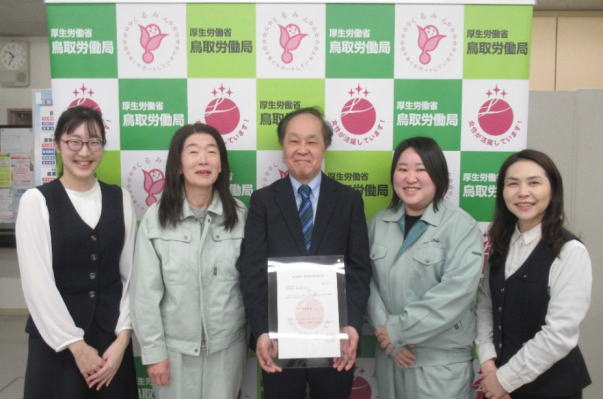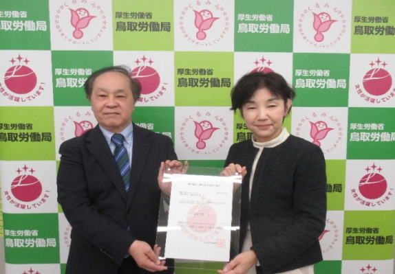 この度、鳥取労働局は鳥取市の株式会社エース・プランを「えるぼし」企業に認定し、令和7年11月7日、雇用環境・均等室長が事業所を訪問して認定通知書を交付しました。