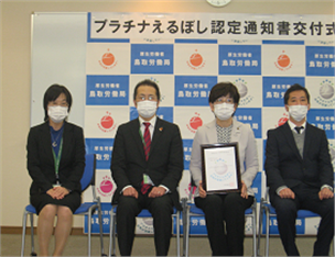 鳥取労働局雇用環境・均等室長が、認定通知書を交付しました。