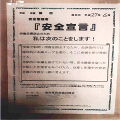 | 鳥取県西部森林組合 安全管理担当者の決意 を関係者へ明らかにす るため、「安全宣言」と して掲出した |