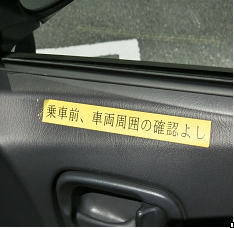 中国電力(株)鳥取営業所 運転席ドアに 「乗車前、車両周囲の確認よし」 と表示して、運転者に安全確認 を求める |