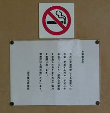 | 中山精工(株) 労働者の健康保持増進を 目的に、安全衛生委員長名 で屋内全面禁煙となったこ とを来客者にも周知 |