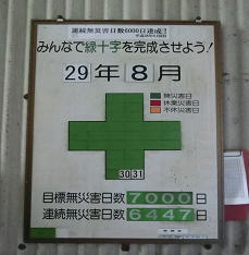 中国電力(株)鳥取営業所 1日無災害で1マス、31個 のマスを埋めて緑十字が 完成。無災害記録を 記録する |