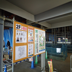 清水・やまこう・大和・ 藤原特定JV 各階に安全掲示板を配置、 作業の安全ルール等を掲示して いるほか、各作業の職長級 (フロアーマスター)を顔写真 入りで掲示し責任体制を明確 にしている |