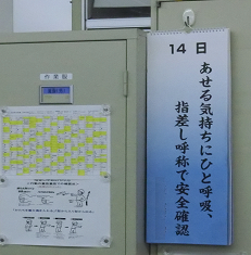 中国電力(株)鳥取営業所 毎年安全衛生キャッチフレ ーズを募集して、優秀作品 を掲示することで安全衛生 意識の高揚を図っている |
