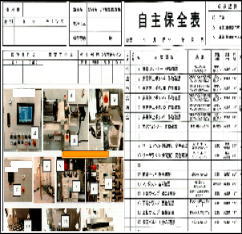 | ダイキン工業(株) ダイキンアレス青谷 機械の点検表に実際の機械の 写真を添付し、番号で 点検箇所と対応させる ことで、点検箇所をわかり やすくしている例 |