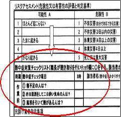 大和建設株式会社 現場で毎日使用するチェックリスト の様式に熱中症に関する項目を 記載し、現場入場作業員の体調 管理を漏れなく実施できるよう 工夫している例 |
