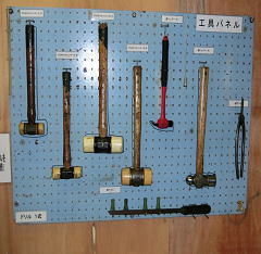 琴浦町の事業場 5Sの一環として工具の置き場所 を工具の形を描いて指定する ことで、片付ける手間が省ける |
