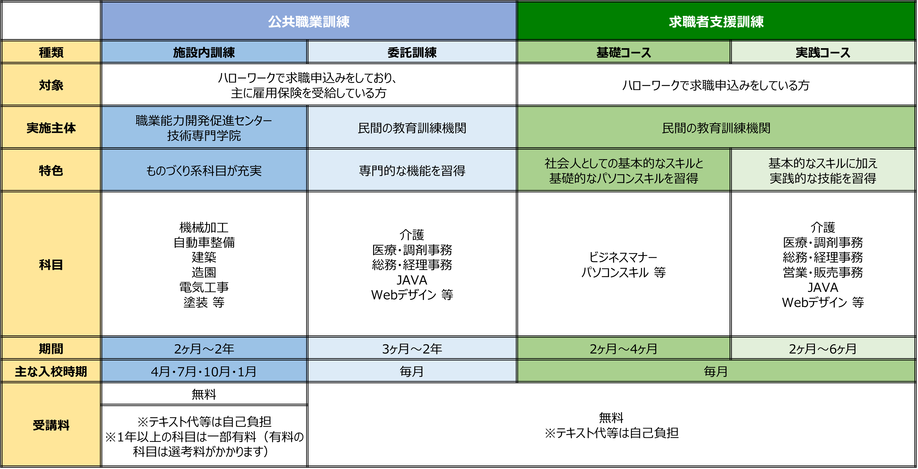 ◇ハロートレーニング(公共職業訓練)の概要(厚生労働省HP)