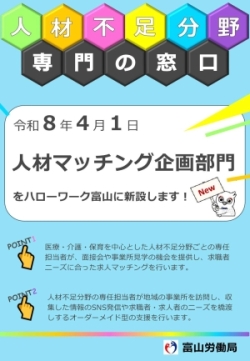 ハローワーク富山に人材マッチング企画部門(愛称:ひとマッチ)が誕生しました!