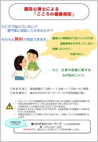 | ・こころの健康相談 | 毎週金曜日13時、14時、15時~ |