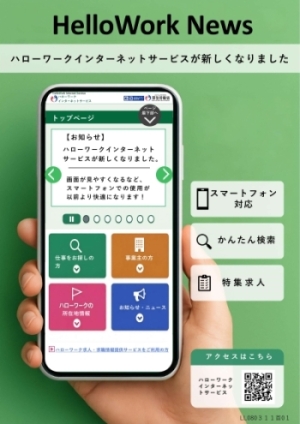 ハローワークインターネットサービスが新しくなりました〔3.4MB〕【ハローワークインターネットサービス】 https://www.hellowork.mhlw.go.jp/ |