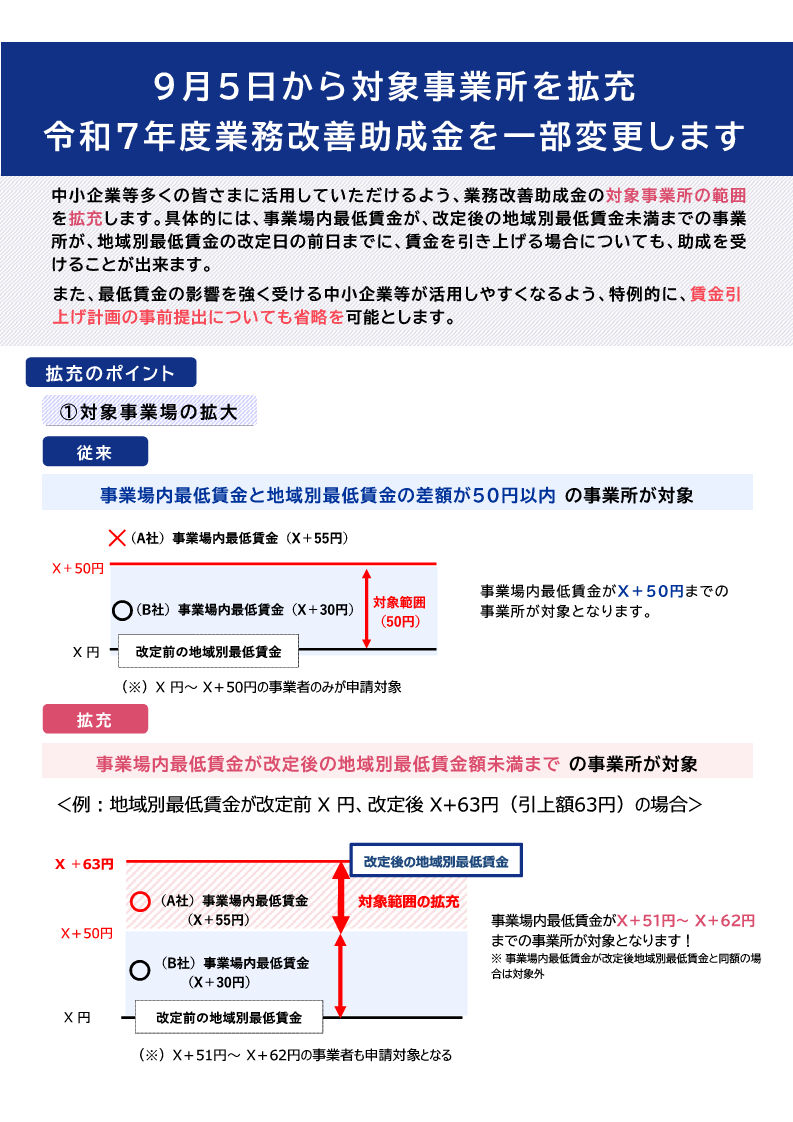 令和7年9月5日業務改善助成金が「拡充」されました。