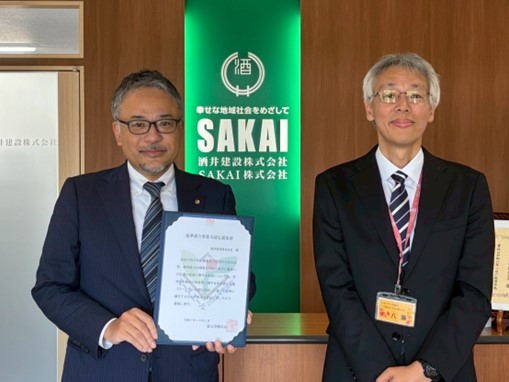 | (写真左) 酒井建設株式会社 取締役社長 酒井 健吉 様 |