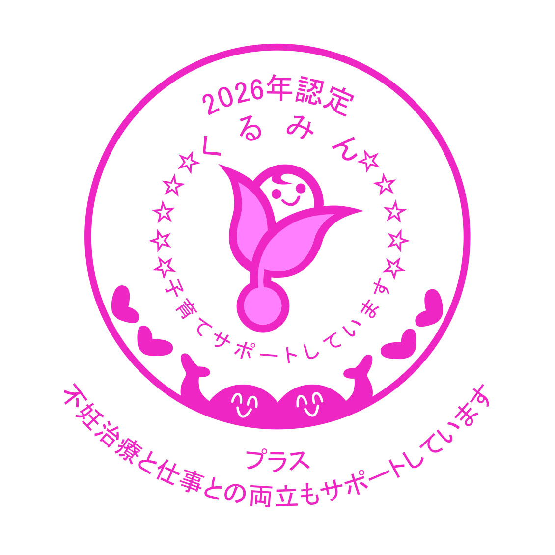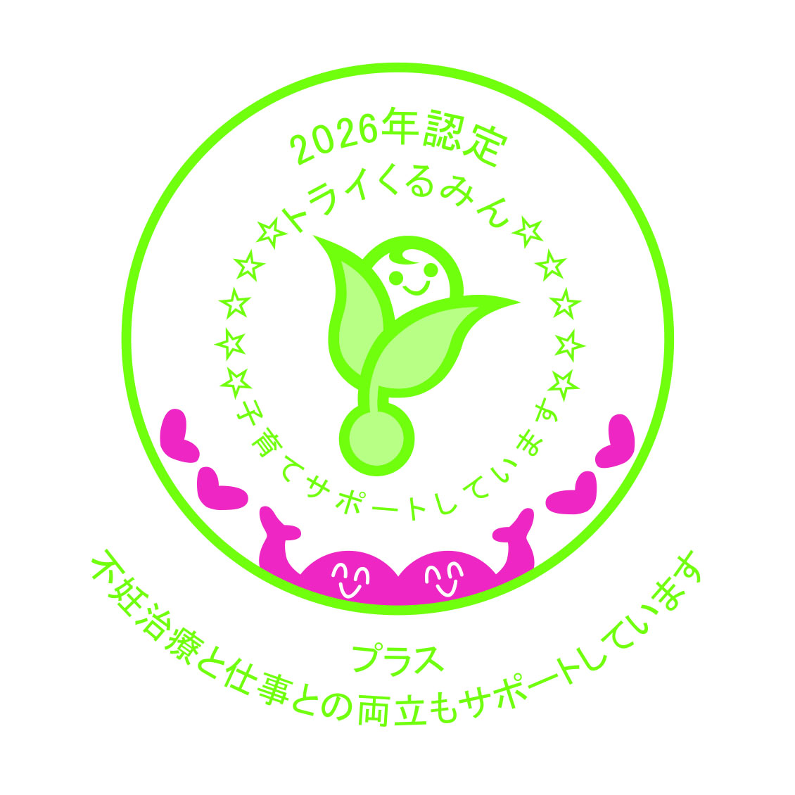 また、不妊治療と仕事の両立がしやすい職場環境に取り組む企業を認定する制度が創設され、「トライくるみん」、「くるみん」、「プラチナくるみん」3種類のマークに、それぞれ「プラス」を追加し、認定を受けることができます。