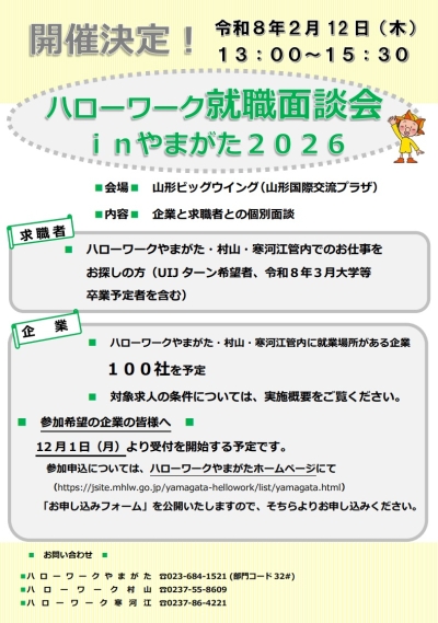 - 「ハローワーク就職面談会inやまがた2026」を開催します!