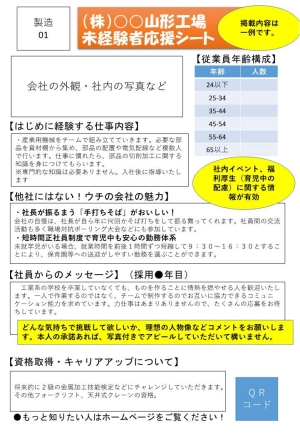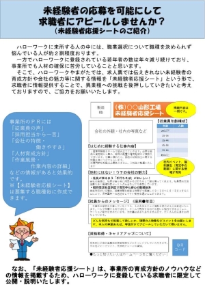 そこで、求人票に加えて会社の魅力をアピールし応募者を増やすチラシ「未経験者応援シート」の作成はいかがでしょうか?