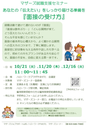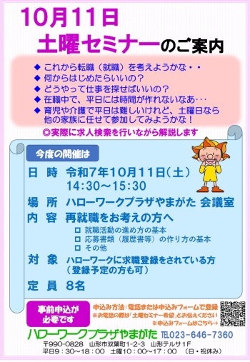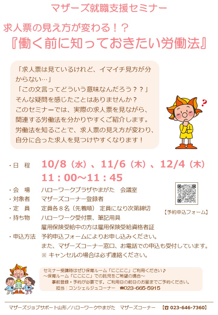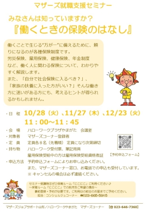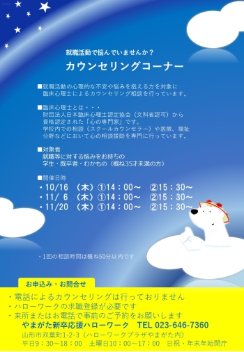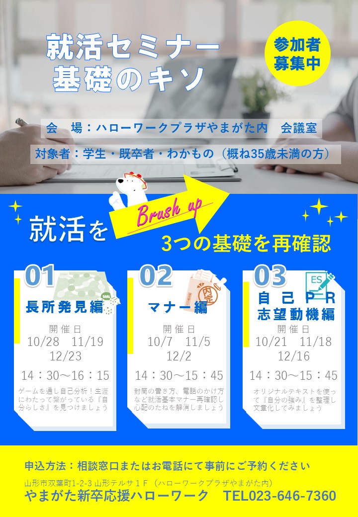 ご利用時間 平 日:午前 9時30分~午後6時00分/土曜日:午前10時00分~午後5時00分 ※12時~2時の時間帯は交替で勤務しております。 |ハローワークプラザやまがた職業相談コーナー|