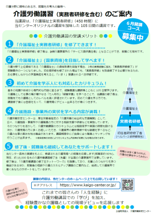 「介護労働講習」とは、公益財団法人介護労働安定センターが実施する、介護労働者を育成するための離職者向け職業講習です。